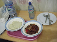 ゆでたヤムイモと、ガーナシチューです。ガーナのシチューやスープは唐辛子が沢山入っていて辛いです。