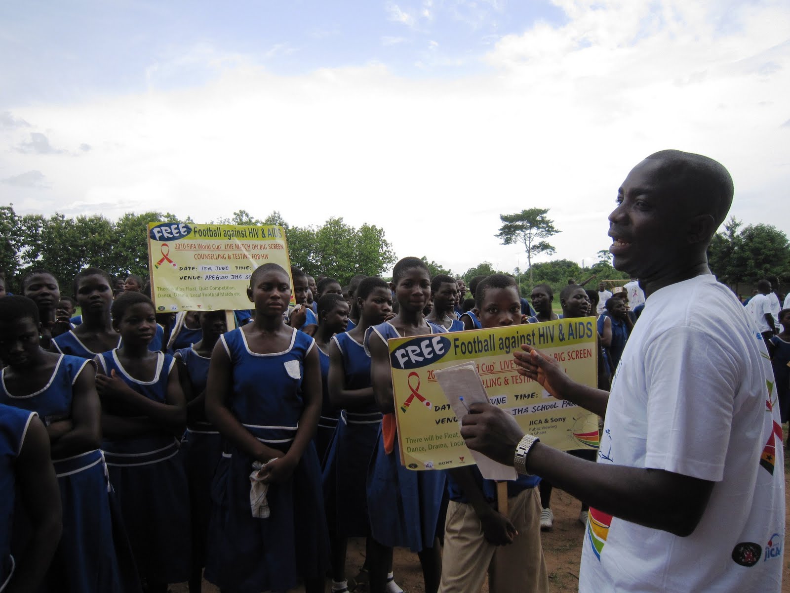 Education 教育 Public Viewing in Ghana-Football against HIV&AIDS-2 Yoko Gocho 2010年6月17日 Floating with Brass band Discussion, Q&A with participants. Drama performance on HIV and AIDS against stigma and discrimination. Audience enjoyed their play. Really appreciate all helped organising this event. Thanks!!!